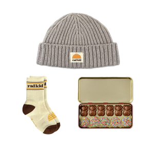 Hop into Easter fun with this delightful trio! Your bundle features a cosy Rad Kid Merino Beanie in Peony Pink paired with soft Organic Cotton Crew Socks in Pink. Top it off with Koko Koala's Outback Tin of creamy Milk Chocolate, the perfect sweet treat to complete your Easter celebration.